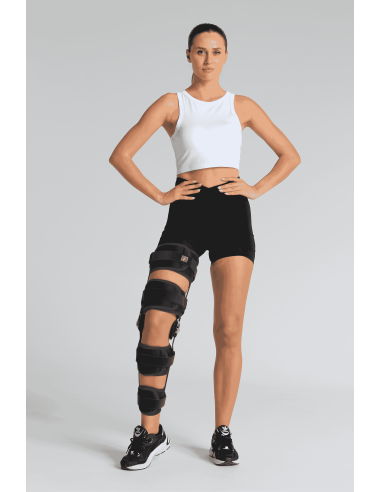 Orthèse ajustable permettant un contrôle précis de l’amplitude de mouvement pour la rééducation et le soutien post-traumatique.